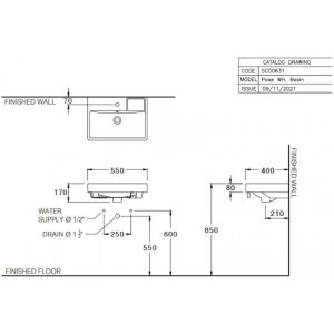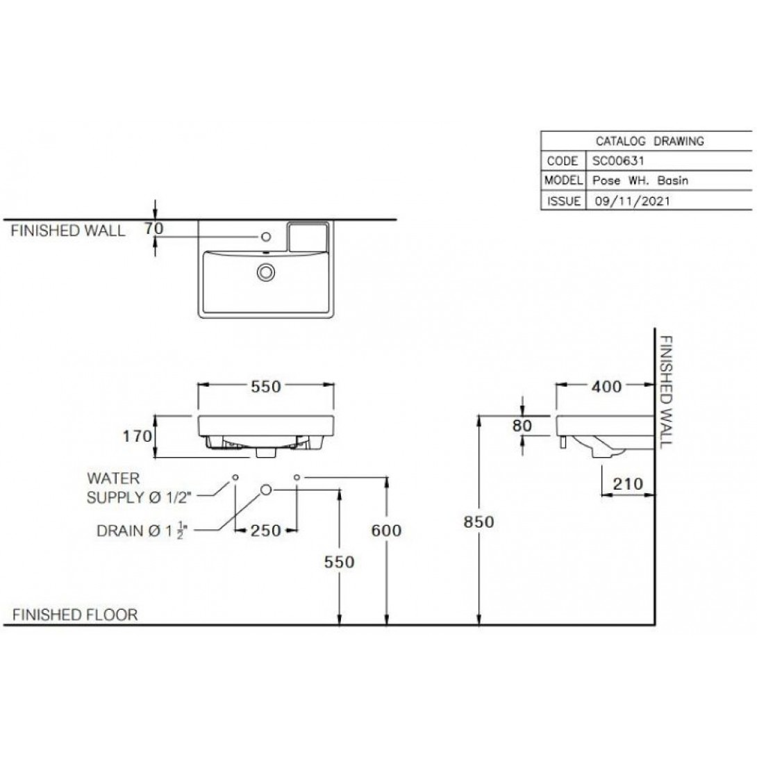 Chậu Rửa Mặt Lavabo COTTO C0225 Kate Bán Âm Bàn