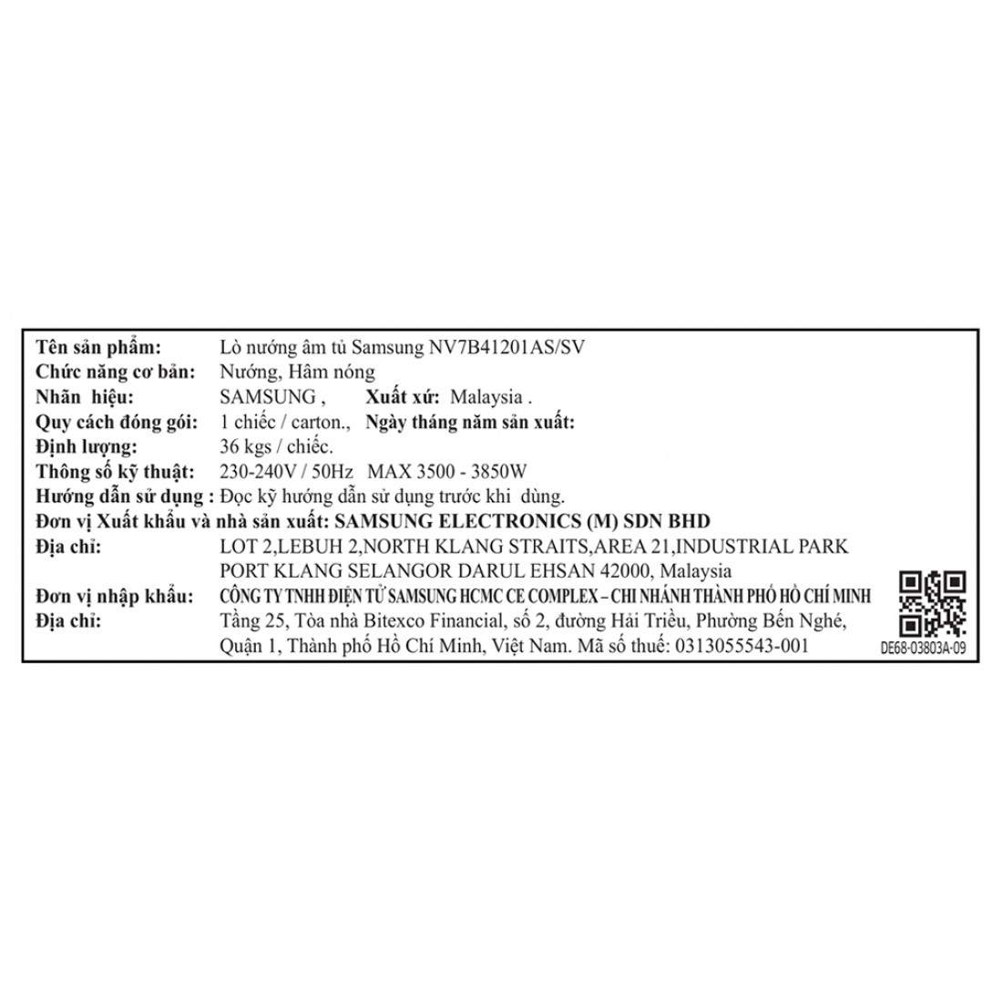 Tính năng lò nướng âm tủ NV7B41201AS-SV 76 lít Samsung màu đen