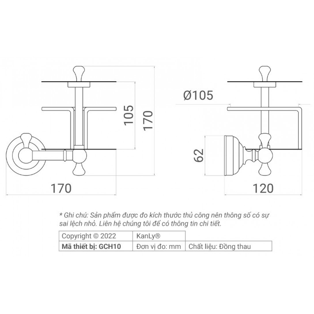 Bản vẽ kỹ thuật giá treo giấy vệ sinh Kanly GCH10