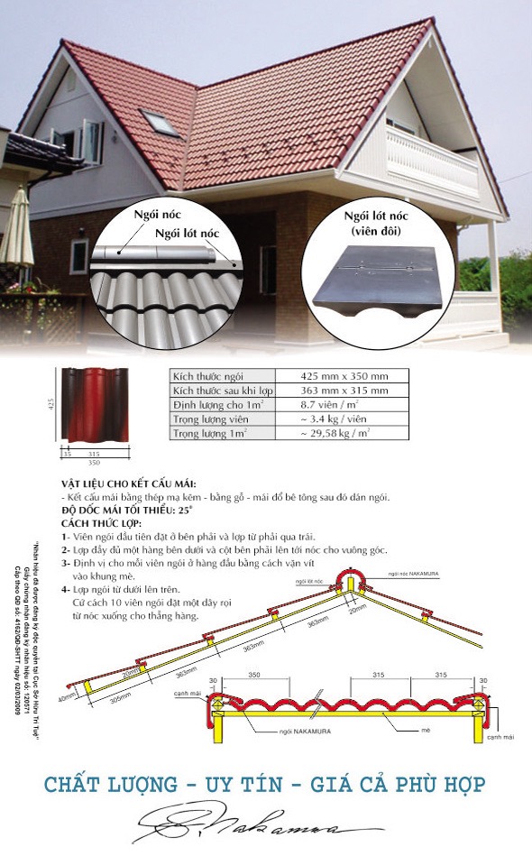 Ngói sóng nhỏ Nakamura với cấu trúc đặc biệt khó bị phá vỡ và lợi thế về tuổi thọ sử dụng, khách hàng đã đặt niềm tin đúng nơi mình cần. Ngói Nhật Nakamura sẽ đồng hành cùng ngôi nhà của bạn theo năm tháng.
