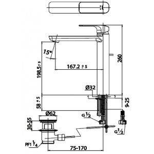 Vòi Nóng Lạnh Lavabo CAESAR B390CU Bộ xả Nhấn