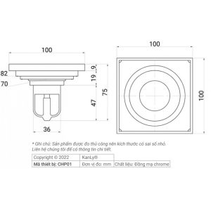 Bản vẽ kỹ thuật phễu thoát sàn Kanly CHP01