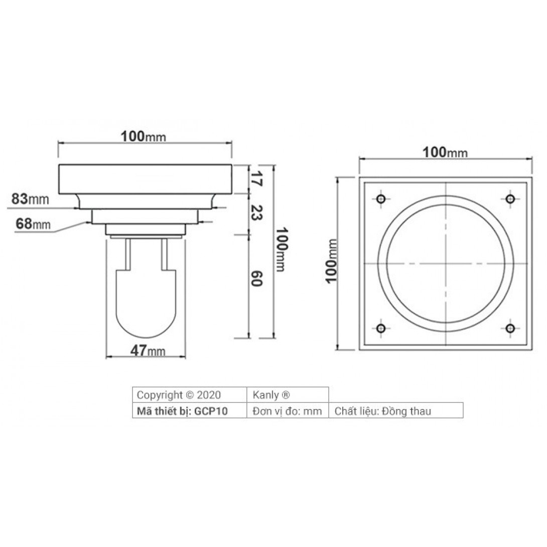 Bản vẽ kỹ thuật phễu thoát sàn Kanly GCP10