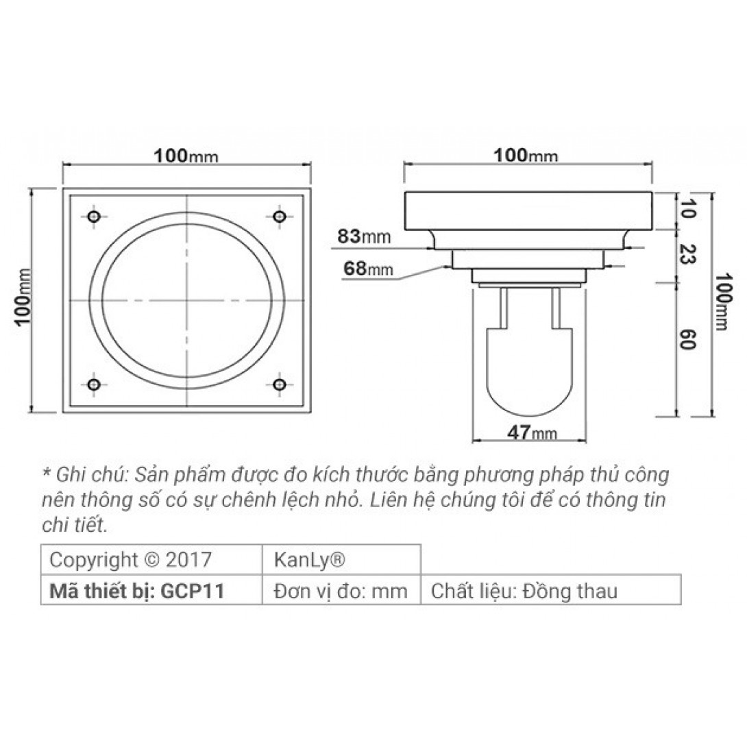 Phễu Thoát Sàn Inax PBFV-120 Vuông 120×120 (Ø60)