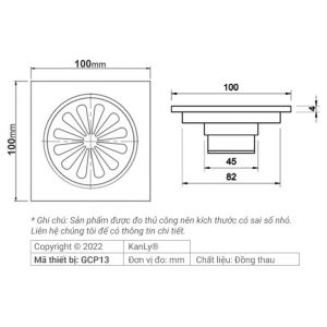 Bản vẽ kỹ thuật phễu thoát sàn Kanly GCP13