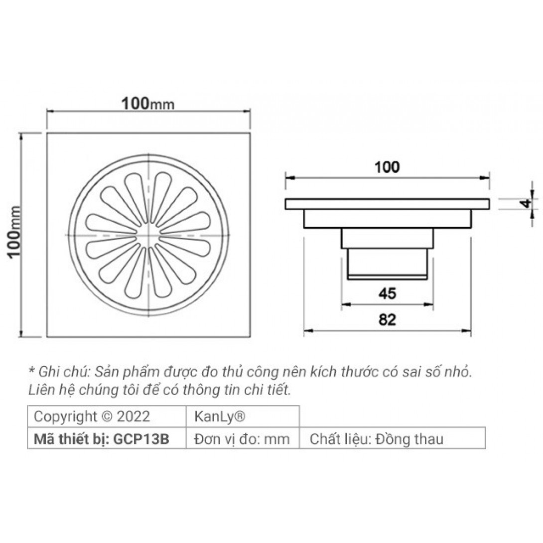 Bản vẽ kỹ thuật phễu thoát sàn Kanly GCP13B màu đen