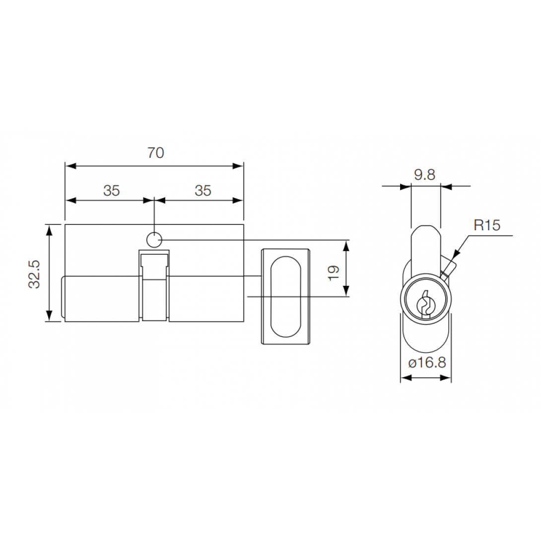 – Chiều dài: 35/35 – Tổng chiều dài: 70mm – 5 chìa vi tính, 6pins – Chất liệu: Đồng – Màu hoàn thiện: Đồng bóng