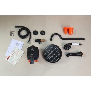 Thiết bị được hoàn thiện từ chất liệu bằng đồng thau từ trong ra ngoài, dày nặng chất lượng. Bề mặt được phủ lớp sơn đen có ánh xước kim loại đỏ kiểu cổ, tạo điểm nhấn mộc mạc, rustic, cổ xưa phù hợp lắp đặt và sử dụng với kiến trúc nội thất phòng tắm tông màu cổ, nâu ấm hoặc kiểu phòng tắm ngoài trời.
