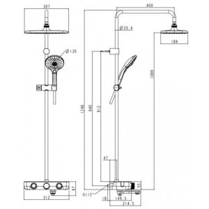 Bản vẽ kỹ thuật sen cây nhiệt độ American WF4956MB màu đen