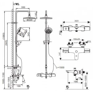 Vòi Sen Cây TOTO TBW08406A Nhiệt Độ Vuông 300mm