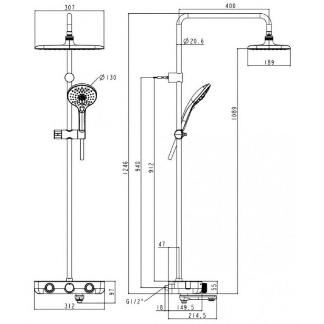 Bản vẽ kỹ thuật sen cây nhiệt độ American WF4956CS màu vàng