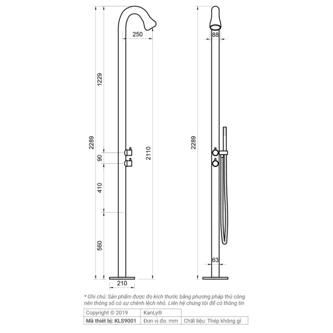 Bản vẽ kỹ thuật sen cây tắm đứng Kanly KLS9001 đặt sàn