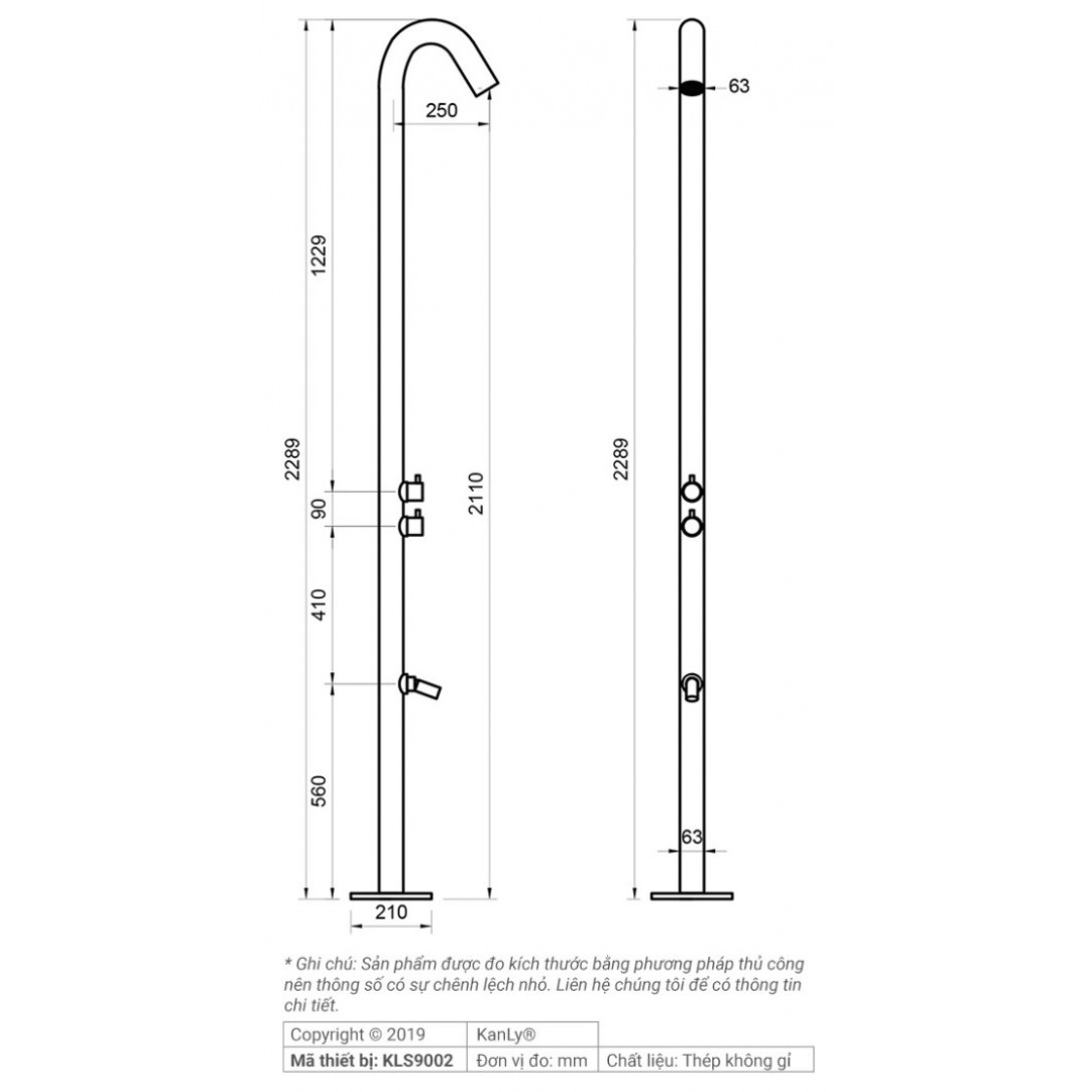 Bản vẽ kích thước vòi tắm đứng Kanly KLS9002