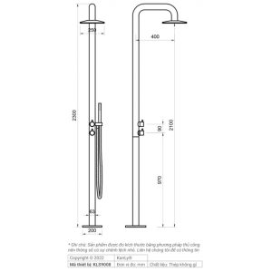 Bản vẽ kỹ thuật sen cây tắm đứng Kanly KLS9008 đặt sàn