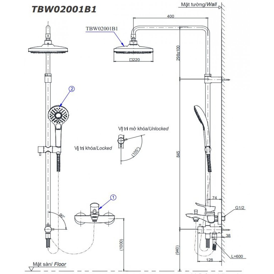 Vòi Sen Tắm Cây Inax BFV-3415T-9C (BFV3415T9C) nhiệt độ