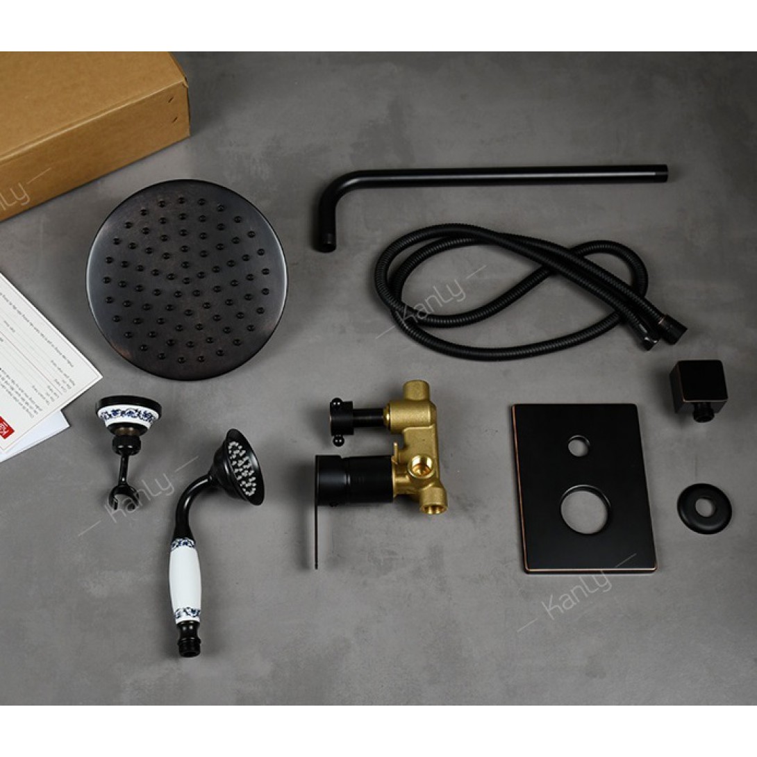 Vòi Sen Kanly GCS75B Nóng Lạnh Âm Tường Đồng Thau Màu Đen Cổ Điển