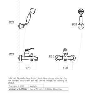 Sen gắn tường GCS20B được thiết kế 2 đường cấp nước nóng lạnh tiện lợi, dễ sử dụng. Bộ sản phẩm tổng trọng lượng khoảng 3kg, dày nặng và chất lượng, đảm bảo để sử dụng ổn định trong môi trường có điều kiện nhiệt độ thấp, độ ẩm cao, dễ làm hỏng thiết bị như phòng tắm hay khu nhà vệ sinh.