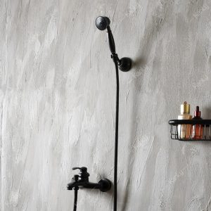 Bộ vòi sen được hoàn thiện từ chất liệu đồng thau. Bề mặt được phủ lớp sơn đen có ánh xước kim loại đỏ kiểu cổ, tạo điểm nhấn mộc mạc, rustic, cổ xưa, phù hợp lắp đặt phối cảnh trong kiến trúc nội thất phòng tắm tông màu cổ, nâu ấm hoặc kiểu phòng tắm ngoài trời, sân vườn.