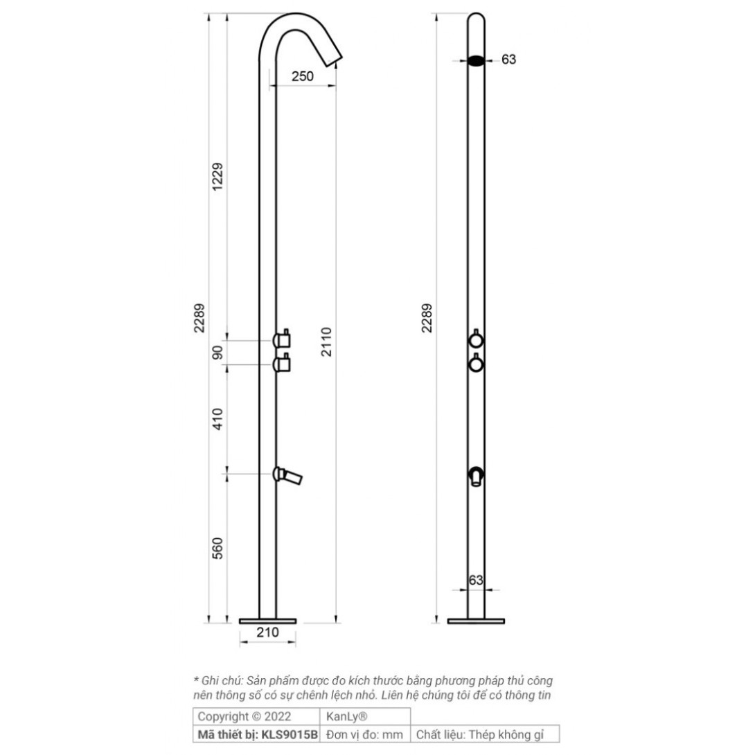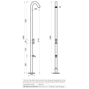 Bản vẽ kích thước sen cây tắm đứng Kanly KLS9015B gắn bể bơi