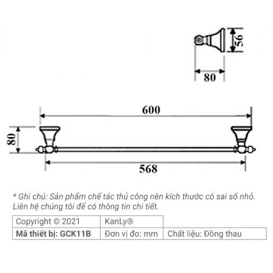 Bản vẽ kỹ thuật thanh vắt khăn Kanly GCK11B