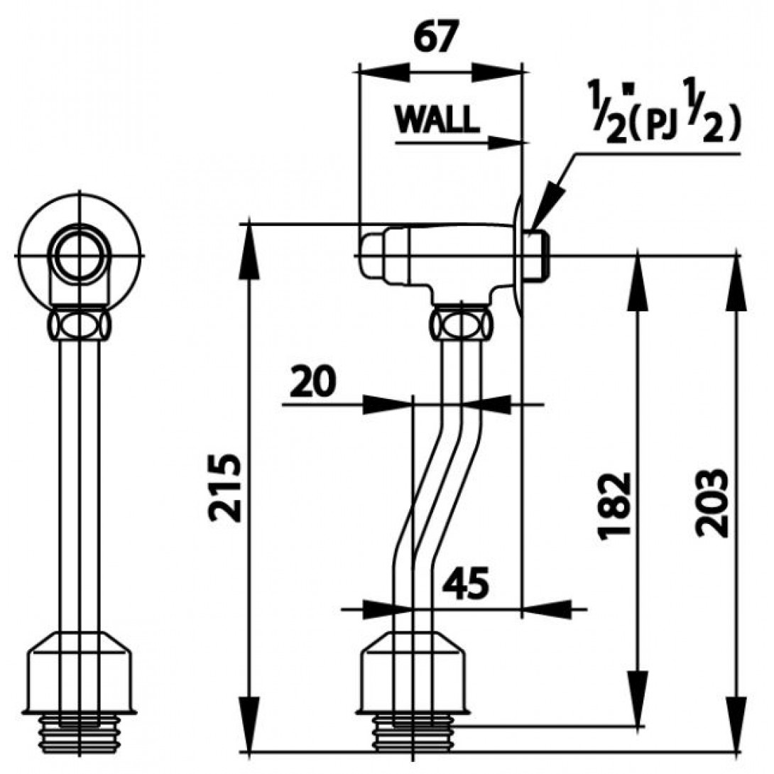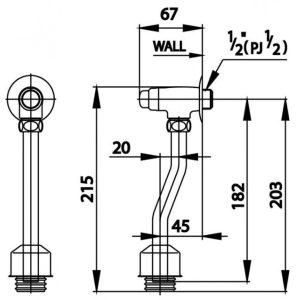 Lắp đặt với bồn tiểu nam có khoảng cách 45mm từ tường đền đầu cấp nước