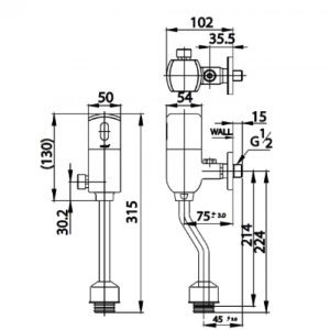Van Xả Tiểu Cảm Ứng Inax OKUV-30SM-0.5 (OKUV30SM0.5) 220V 0.5 Lít