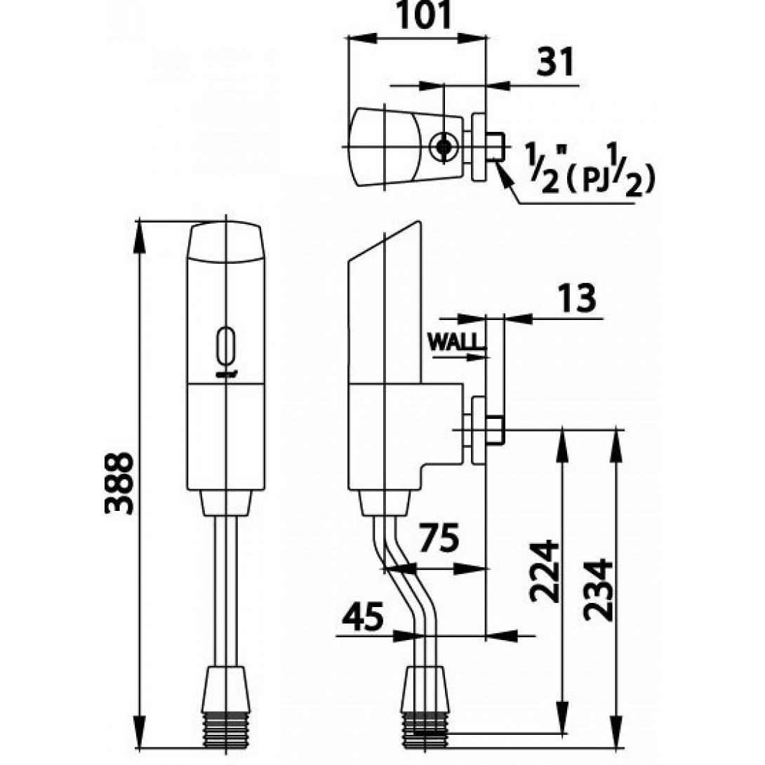 Van Xả Tiểu Cảm Ứng Inax OKUV-120S(A/B) Dùng Pin