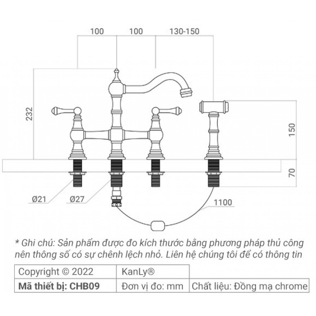 Bản vẽ kỹ thuật vòi âm bàn Kanly CHB09
