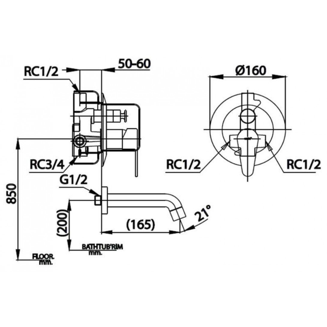Vòi Chậu Grohe Atrio 20164003 Nóng Lạnh 3 Lỗ Gắn Tường