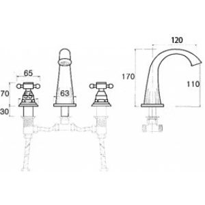 Bản vẽ kích thước vòi lavabo 3 lỗ Kanly GCB03