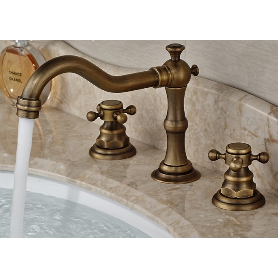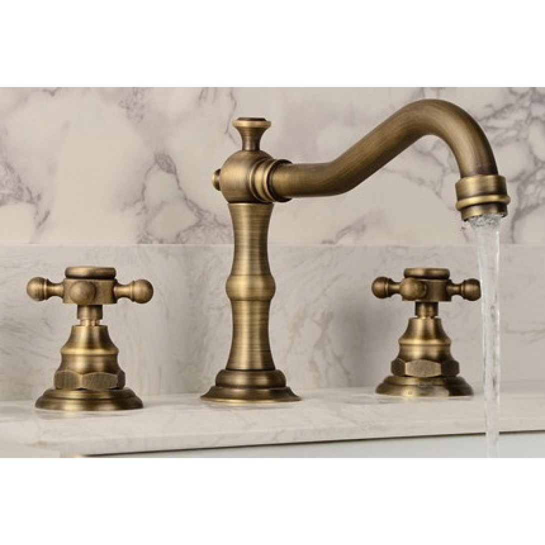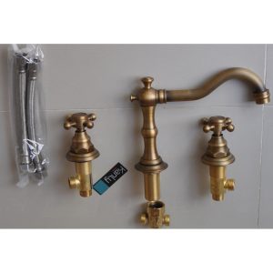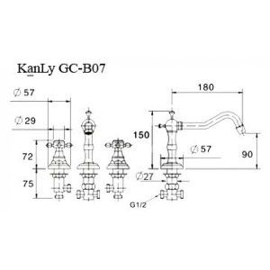Vòi Kanly kiểu GCB07 loại vòi chậu 3 lỗ bằng đồng thau dùng cho lavabo 3 lỗ cổ điển, chậu rửa mặt 3 lỗ xưa, nước nóng lạnh, vòi chậu 3 lỗ, vòi nước giả cổ cổ điển,cổ điển có van nóng lạnh riêng biệt, thân thấp, gắn trên thành, vành lavabo, chậu rửa, hoặc trên mặt bàn đối với chậu âm bàn, lắp đặt cấp nước lạnh bên phải, nóng bên trái.