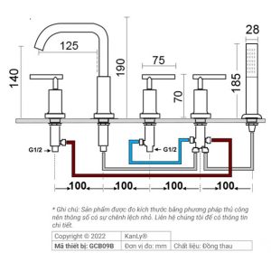 Bản vẽ kích thước vòi lavabo Kanly GCB09B màu đen