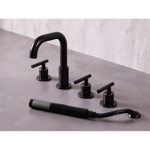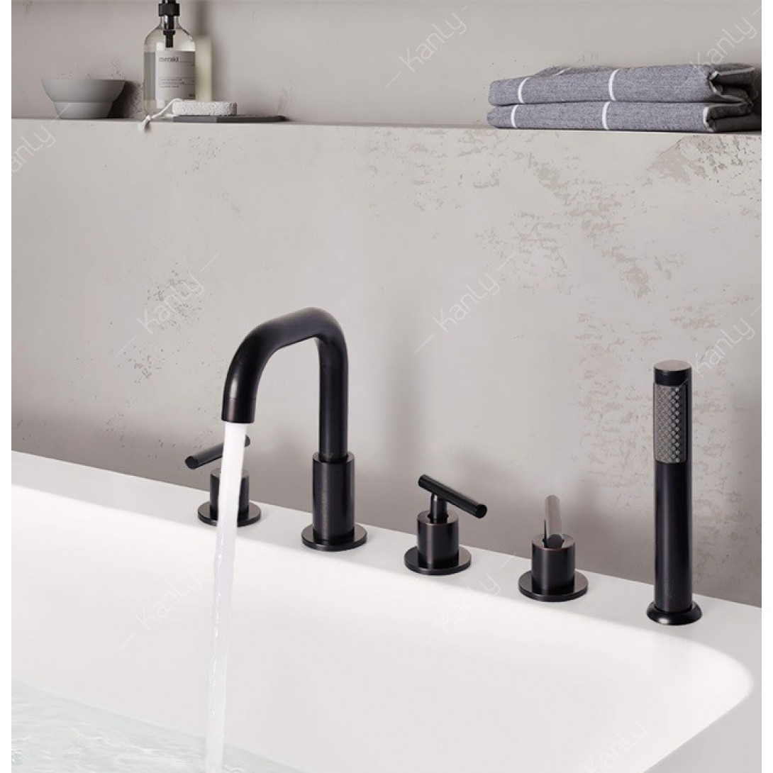 Vòi Lavabo 5 Lỗ Kanly GCB09B Nóng Lạnh Bằng Đồng Màu Đen