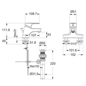 Vòi Nóng Lạnh Lavabo CAESAR B390CU Bộ xả Nhấn