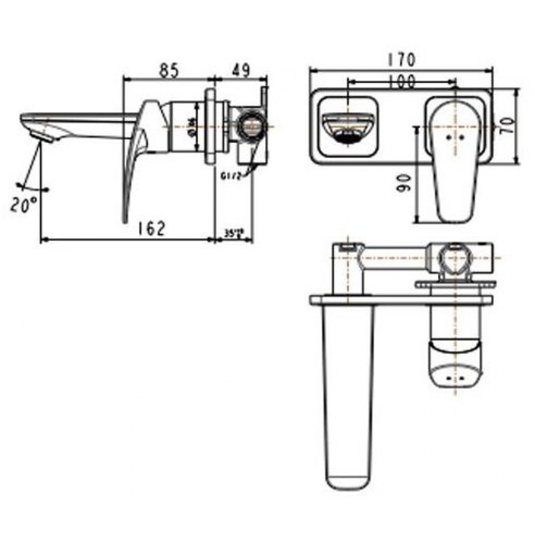Bản vẽ kích thước vòi lavabo American WF0904 gắn tường