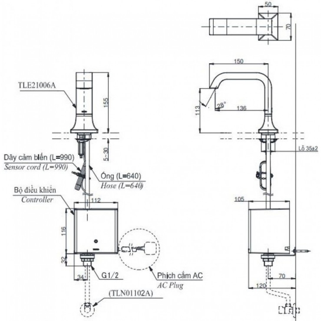 Vòi Rửa Lavabo Inax LFV-211S (LFV211S) Nóng Lạnh Chậu 3 Lỗ