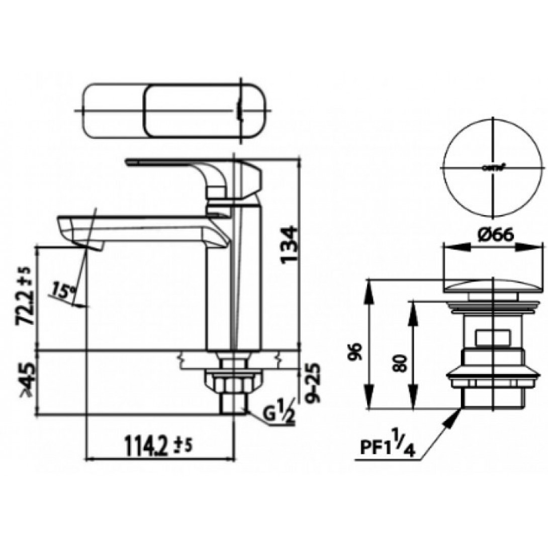 Vòi Nóng Lạnh Lavabo CAESAR B390CU Bộ xả Nhấn