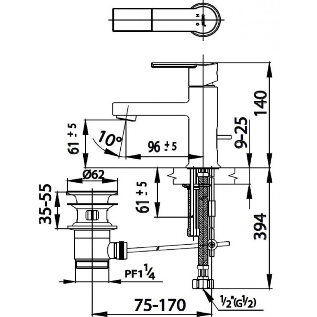 Vòi Nóng Lạnh Lavabo CAESAR B390CU Bộ xả Nhấn