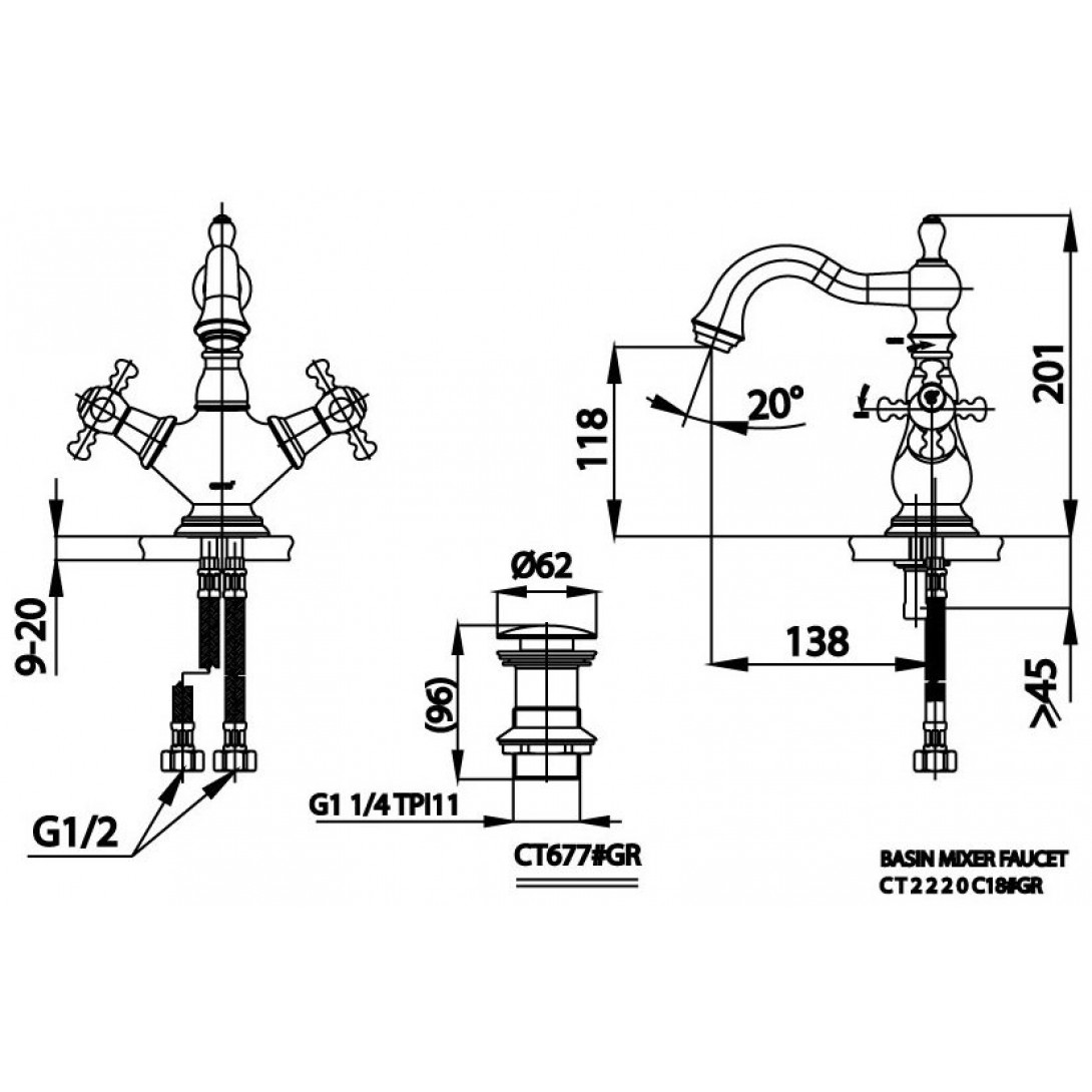 Vòi Nóng Lạnh Lavabo CAESAR B402CU Chậu 3 Lỗ