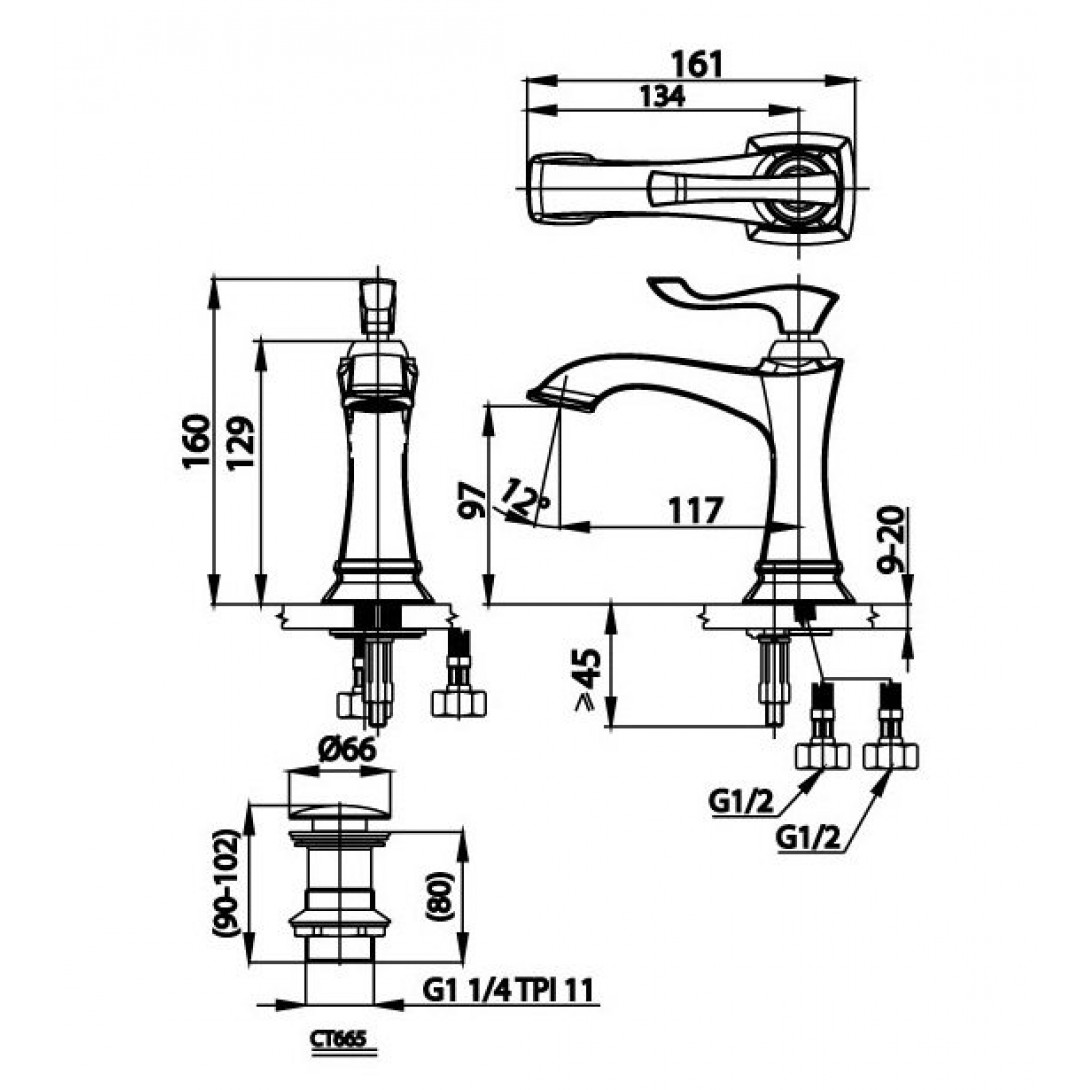 Vòi Nóng Lạnh Lavabo CAESAR B402CU Chậu 3 Lỗ