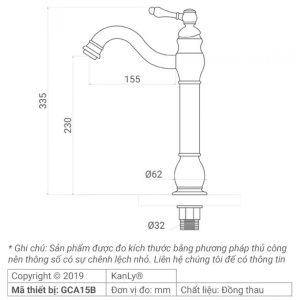 Bản vẽ kích thước vòi lavabo Kanly GCA15B màu đen