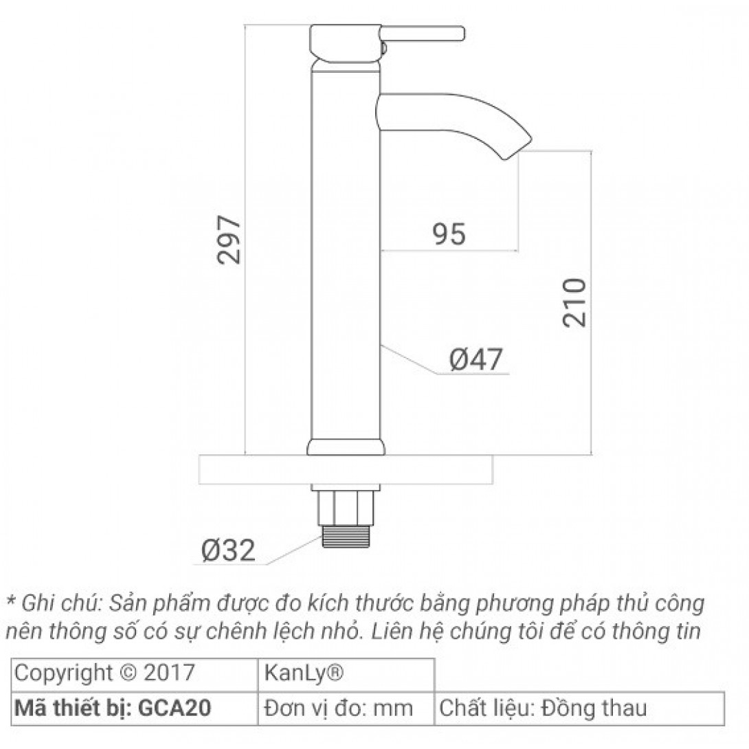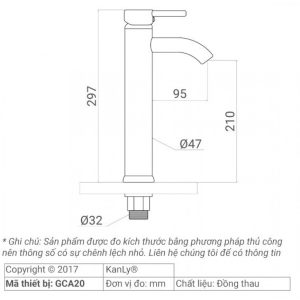Bản vẽ kích thước vòi lavabo Kanly GCA20