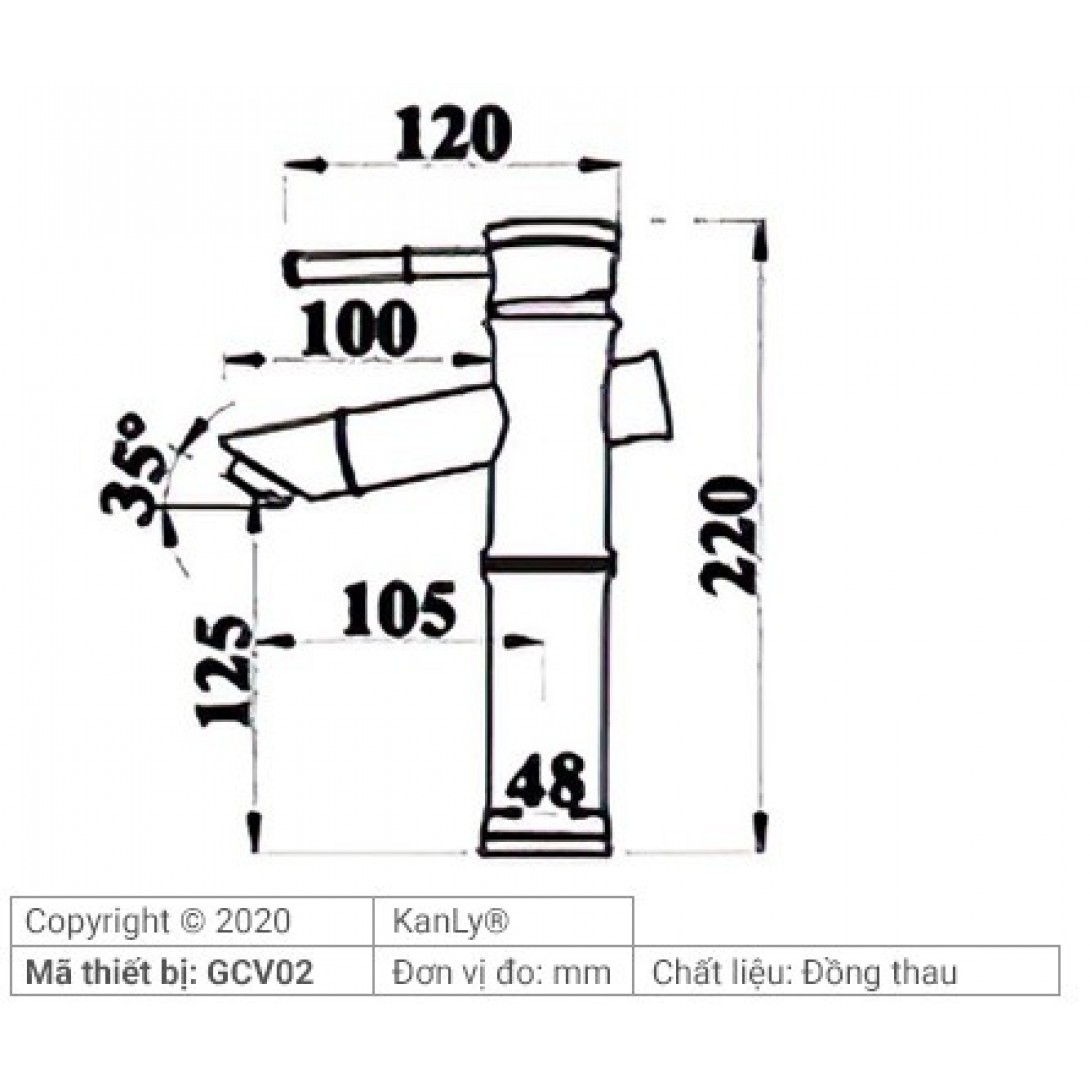 Thông tin vòi lavabo Kanly GCV02 đồng thau