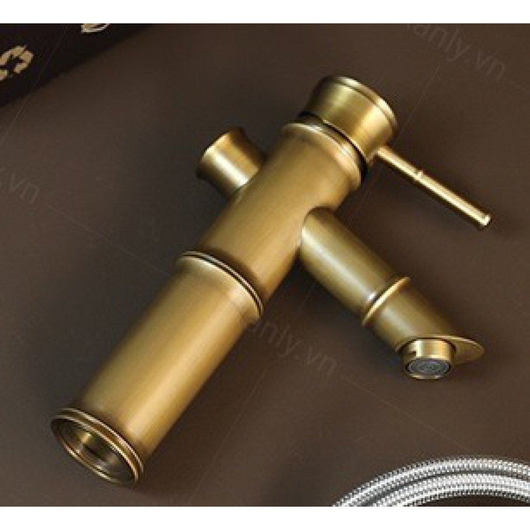 Vòi Lavabo Kanly GCV02 Nóng Lạnh Bằng Đồng Hình Ống Tre