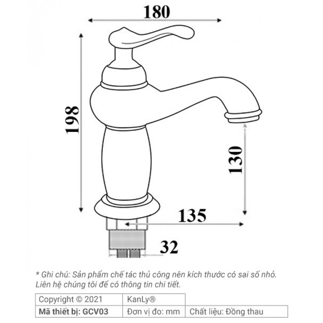 Thông tin vòi chậu rửa mặt Kanly GCV03 đồng thau