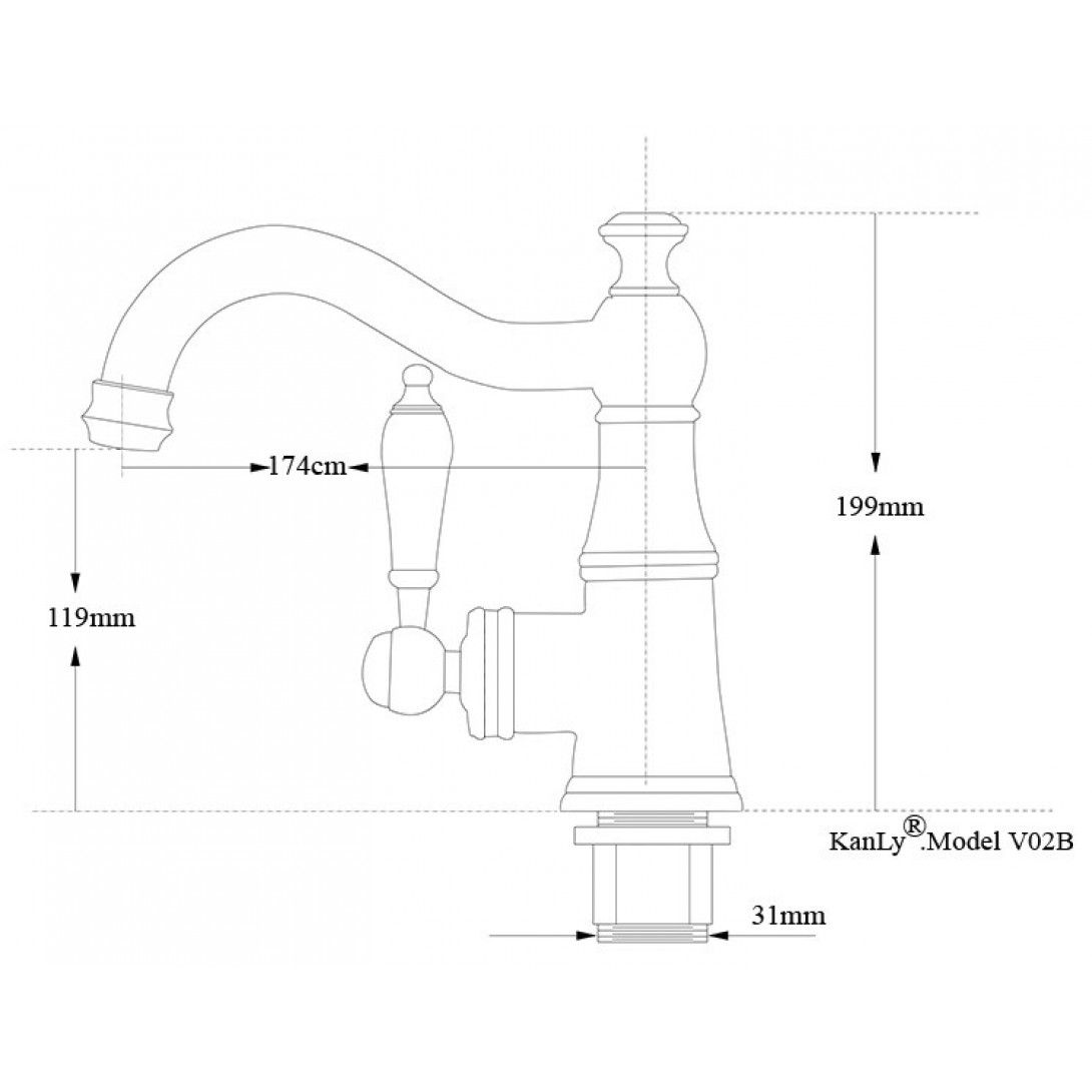 Bản vẽ kích thước vòi lavabo Kanly GCV06B màu đen
