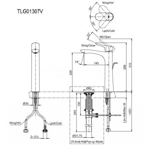 Vòi Nóng Lạnh Lavabo CAESAR B380CU Bộ Xả Nhấn