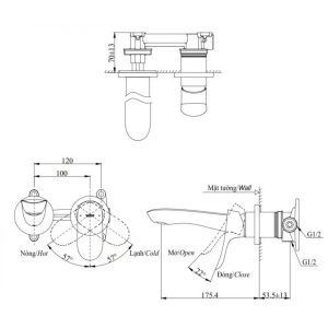 Vòi Nóng Lạnh Lavabo CAESAR B402CU Chậu 3 Lỗ