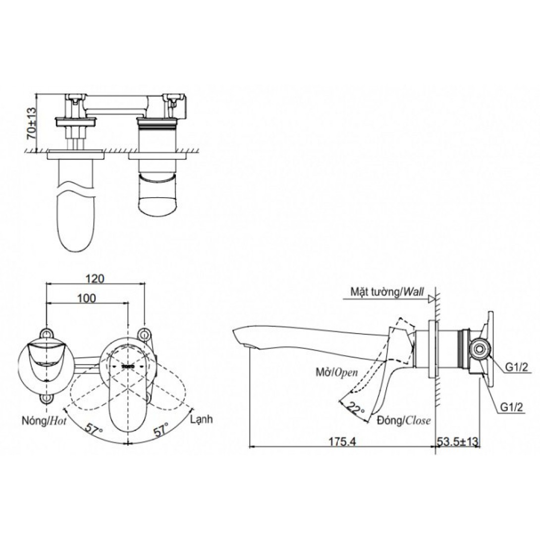 Vòi Nóng Lạnh Lavabo CAESAR B380CU Bộ Xả Nhấn