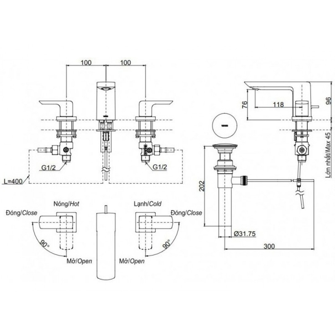 Vòi Nóng Lạnh Lavabo CAESAR B170CU Bộ Xả Nhấn (TDM)